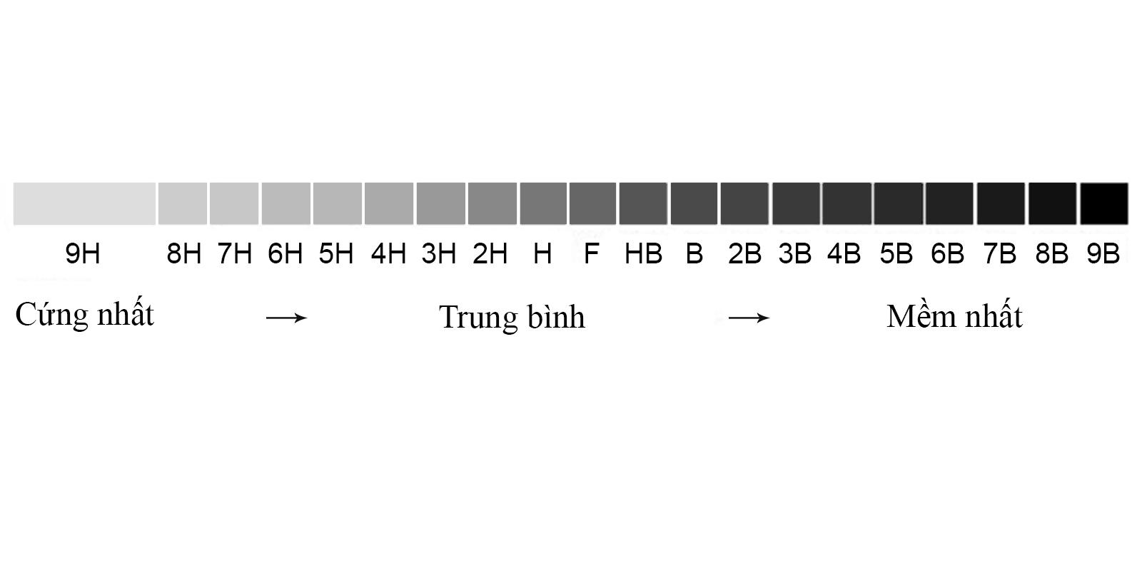 1. Phân loại bút chì theo độ cứng ruột chì
