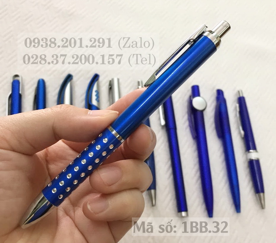 Bút bi nhựa mã số 1BB.32 có thân màu bạc hoặc thân màu đen phối các hạt tròn nhỏ ở phần thân dưới bút rất xinh xắn, có thể in logo và tên công ty, đơn vị, trường học lên thân bút để làm quà tặng quảng cáo rất đẹp