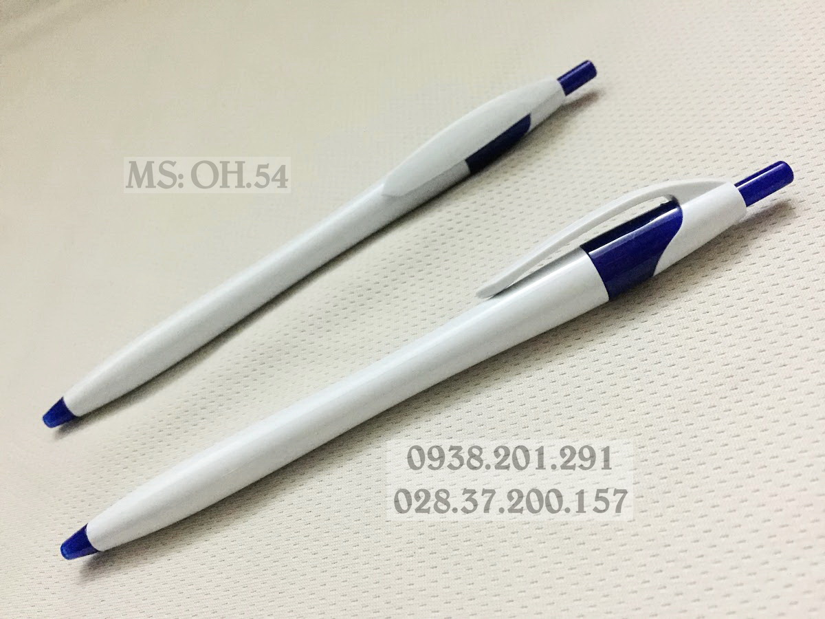 Bút bi nhựa trắng xanh OH.54