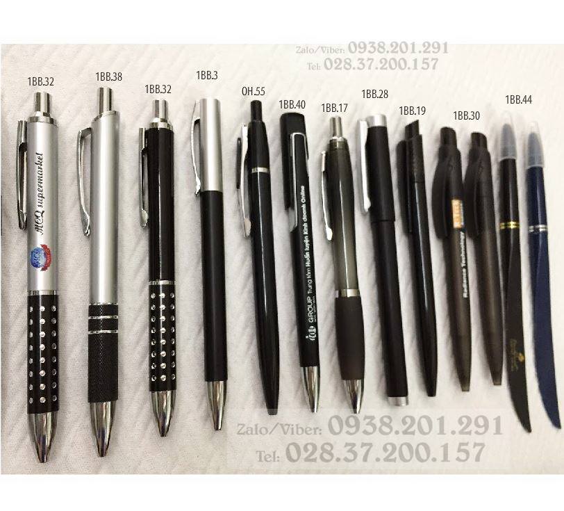Các mẫu bút bi nhựa OH.55, 1BB.40, 1BB.17, 1BB.28, 1BB.19, 1BB.30, 1BB.44 là các mẫu bút bi có hầu hết toàn thân bút màu đen, phù hợp với các công ty có màu sắc thương hiệu là màu đen, in ấn logo, tên công ty màu vàng, màu trắng, màu nhạt... rất nổi bật.