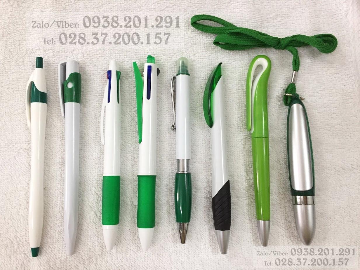 Các mẫu bút màu trắng phối màu xanh lá cây cũng rất phù hợp để làm quà tặng số lượng nhiều cho khách hàng, nhân viên, học viên... Có loại viết 1 ngòi, có loại viết bi 3 ngòi, 4 ngòi, có đầu dạ quang đánh dấu, cũng có loại viết bi có dây đeo cổ tránh thất lạc...
