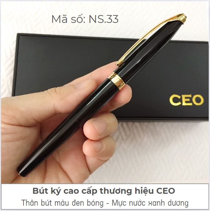 Bút ký cao cấp màu đen bóng thương hiệu CEO mã số NS.32 là loại bút xịn, có thiết kế sang trọng, thân bút được phủ một lớp sơn cao cấp, bên trong thân kim loại rất bền chắc. Bút có độ trơn bóng, độ nặng vừa phải, cầm chắc tay. Ngòi bút trơn, khi viết cho cảm giác rất êm ái, nhẹ nhàng.
