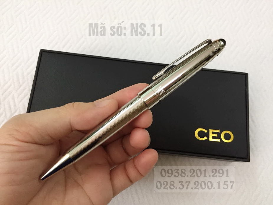 Bút ký cao cấp màu trắng bạc xám mờ thương hiệu CEO mã số NS.11 là loại bút xịn, có thiết kế sang trọng, thân bút được phủ một lớp sơn cao cấp, bên trong thân kim loại rất bền chắc. Bút nặng vừa phải, cầm chắc tay. Ngòi bút trơn, khi viết cho cảm giác rất êm ái, nhẹ nhàng.