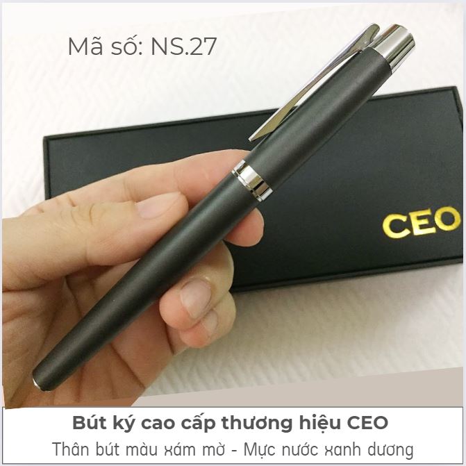 Bút ký cao cấp màu xám mờ thương hiệu CEO mã số NS.27 là loại bút xịn, có thiết kế sang trọng, thân bút được phủ một lớp sơn cao cấp, bên trong thân kim loại rất bền chắc. Bút có độ trơn bóng, độ nặng vừa phải, cầm chắc tay. Ngòi bút trơn, khi viết cho cảm giác rất êm ái, nhẹ nhàng.