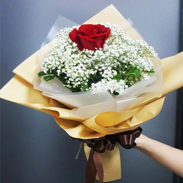 1 đoá hoa hồng: Thường là một món quà gởi đến người mà bạn yêu thương. Bên cạnh đấy, một bông hồng còn gởi gắm một lời nhắn nhủ dễ thương: “Yêu từ cái nhìn đầu tiên”