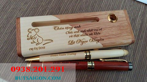 Bút gỗ in logo đẹp, kèm hộp gỗ kiểu dáng đa dạng phong phú sang trọng tại butsaigon.com