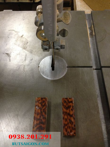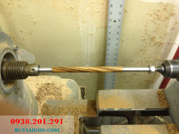 Một khi gần tới lớp kim loại thì ngừng lại. Lấy giấy nhám đánh bóng bề mặt thân bút, dùng chút sáp để bút gỗ màu nâu có có hiệu quả bên ngoài tốt, sáng bóng hơn.