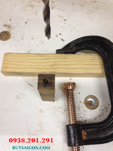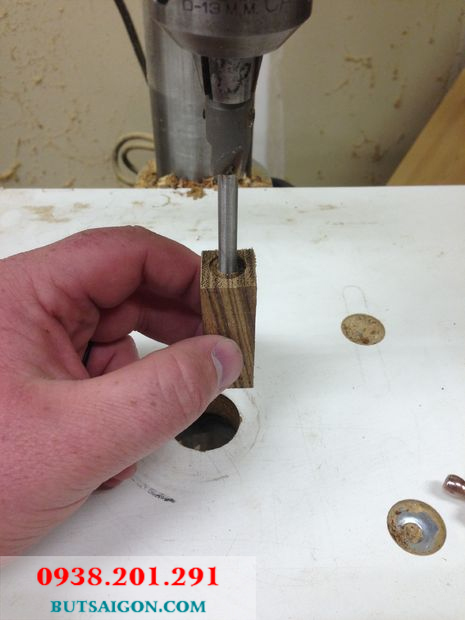 Khoan tạo lỗ trong khối gỗ là bước tiếp theo trong quy trình làn bút gỗ