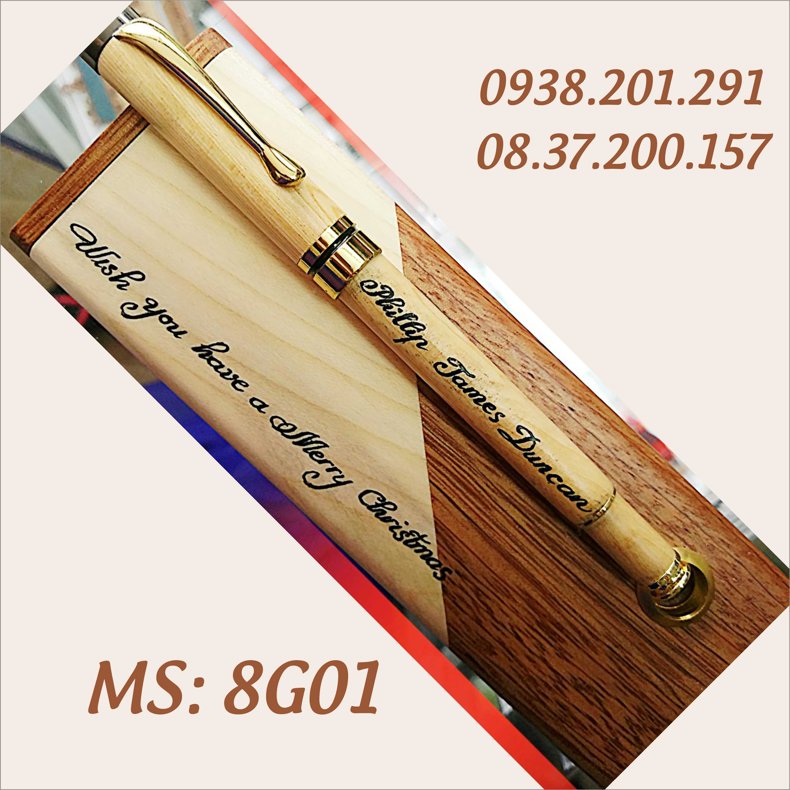 Hộp đựng bút gỗ giá rẻ in logo doanh nghiệp, địa chỉ công ty tinh tế, ưa nhìn